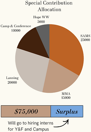 If we were able to raise that to $15K a week we would be able to responsibly add another campus staff couple to lead the Wayne State campus ministry.